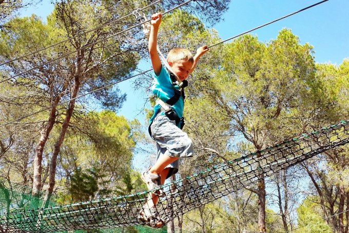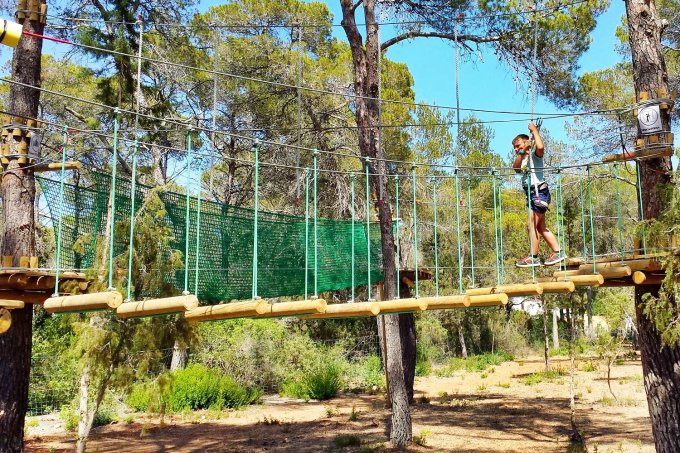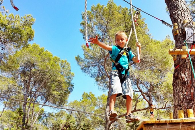 The Red course has more difficult exercises and requires a bit more skill level but like mentioned above there is no difference in safety between the two courses. In total Acrobosc Ibiza offers a staggering 65 different activities (27 platforms between 2-6 metres high , 29 games and 9 ziplines between 10-65 metres long)
