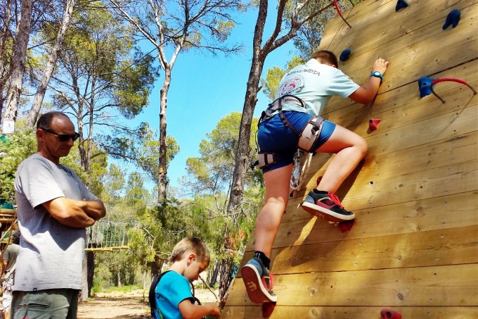 I was really impressed at the variety of activities available at Acrobosc Ibiza, from climbing to zip lines to tight-rope walking. There was truly something for all ages and skill level. The center is a great way for younger kids to develop climbing and balance skills and great entertainment for older participants. Apart from the infant center (for kids from 3-6 years old, the entire family can really join in!) and the ground level training course (realized before starting the Blue or Red course, whichever one comes first) there are 2 main courses: Blue and Red.