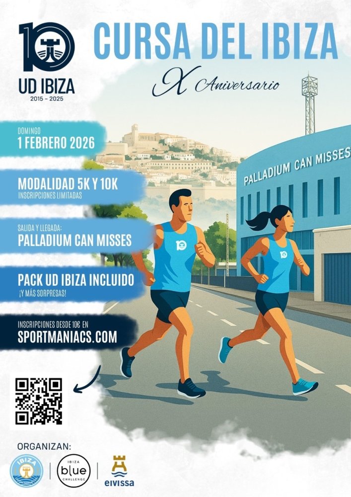 Questo nuovo evento sportivo, organizzato dal club in collaborazione con Ibiza Blue Challenge e il Comune di Ibiza Città, offre ai corridori la possibilità di scegliere tra due distanze: 10 km e 5 km, entrambi su un circuito urbano.