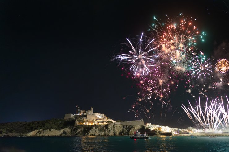 L'highlight è sempre il grande spettacolo di fuochi d'artificio che si tiene nel porto di Ibiza Città alla mezzanotte dell'8 agosto: i vacanzieri arrivano in pullman per assistere allo spettacolo e anche molti residenti dell'isola vengono in città. Ecco alcuni consigli sui posti che offrono un'ottima vista dello spettacolo.