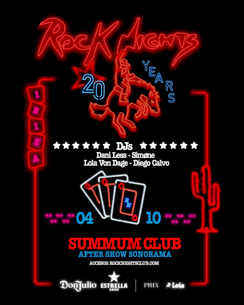 Benvenuti a una nuova stagione di notti indimenticabili ricche di musica ed energia, ma anche dello spirito di Ibiza. Rock Nights festeggia 20 anni con esplosivi spettacoli live, location segrete, atmosfera da spiaggia e magia sonora.