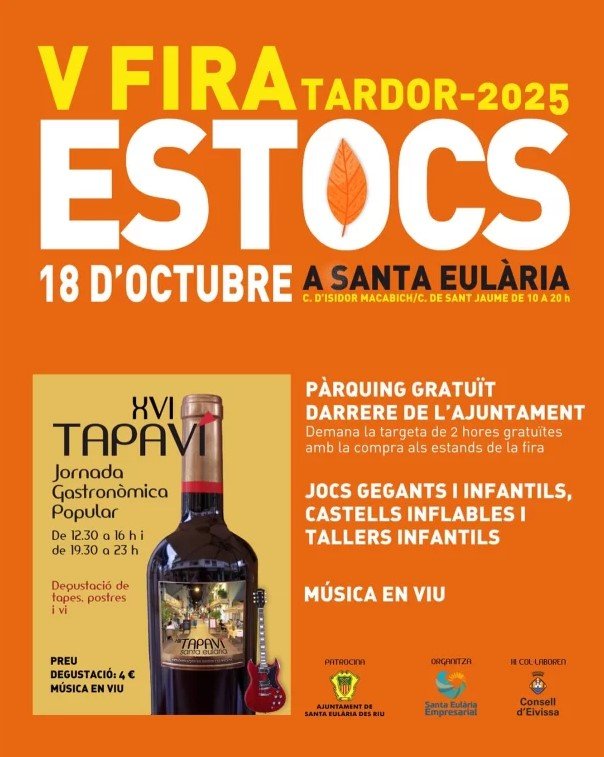 Sabato 18 ottobre, raggiungi il centro di Santa Eulalia dalle 10:00 alle 20:00.