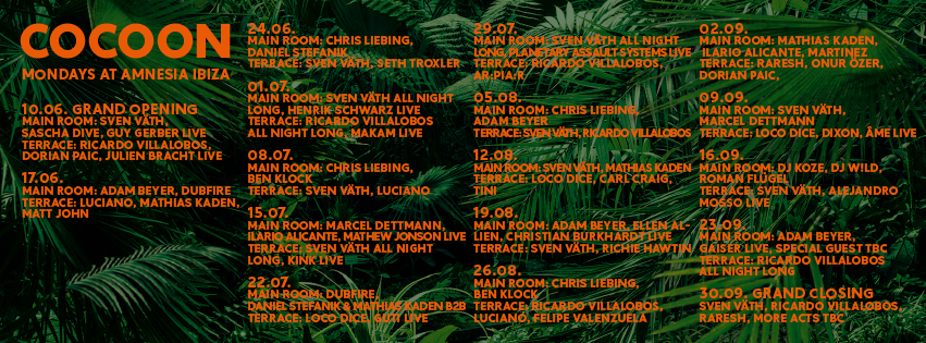 Tickets for the first four dates are available now at Spotlight, with the later dates on sale soon. We think this is an incredible answer to all of Cocoon's competition in Ibiza – where else in the world can you look forward to Mondays this much?!