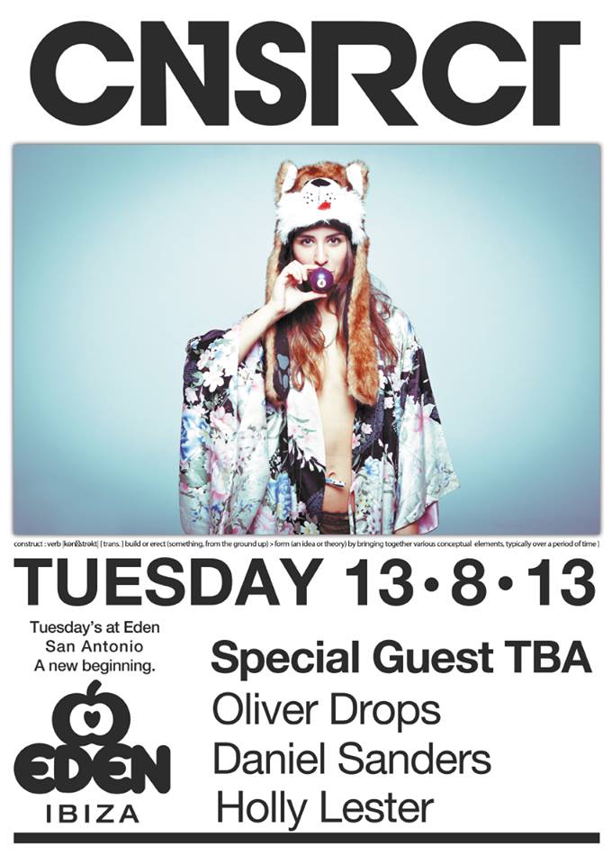 Music will be completely up-to-the-minute and Ibiza focused, as resident DJs originate from the workers circuit and are about as musically "in the know" as they come. There will also be a special surprise guest every week, to keep the music fresh and clubbers on their toes. The workers of San An are an important part of the new era of Eden which began in 2013 and to that end all workers' are granted free entry to CNSTRCT, all Eden pass holders get a free guest and workers receive 50% discount on drinks. Good luck getting half price drinks at a superclub anywhere else!