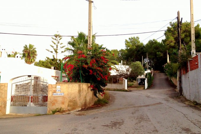 Not surprisingly, the Bishop's former place of refuge is not easy to find, and we hope that the photos at the end of this article will help you find your way a little easier. Take the main road from Ibiza Town to San Antonio. You will see a huge ‘Hiper market' (image 1, below) on your right hand side, and at the very first mini-roundabout you reach afterwards, turn right towards the industrial estate. Drive straight ahead, into the countryside (image 2, below) and up a hill and when you see the sign for Can Farraret, (image 3, below) bear right, then take an immediate right uphill. My companion and I parked in the small car park below the monument.