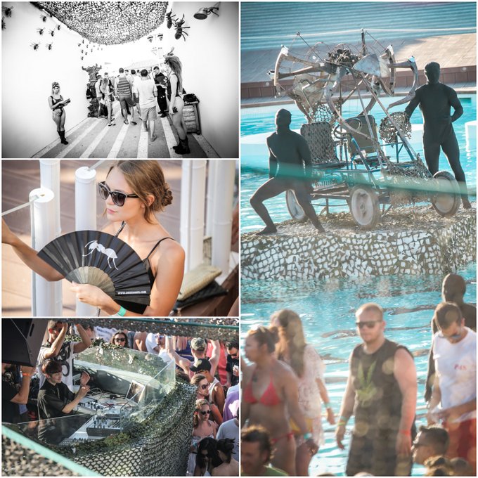 Upon heading into the pool area, one of the first things that I noticed was the unique layout of the party. I had initially expected the main events to be taking place on the stage at the front of the venue, but was pleasantly surprised to find Maya Jane Coles playing to a pretty big crowd from a large ‘hut’ near the bar at the back. The idea of putting the DJ booth in the middle of the surrounding dancefloor seriously paid off for the party as it did away with the barrier between the artist and their fans that a stage can so often impose. As a result, the crowd were getting into the party right from the off. Quite often in daytime parties, the first few hours can be a little lacklustre while all the fans get their drink on and adjust to the party spirit, but Maya Jane Coles saw to it that the party start right away and did so with a mix of quite slow, groovy tech pieces that transitioned by the end of her set into the more dark sound that we’ve come to associate with British electronic music.
