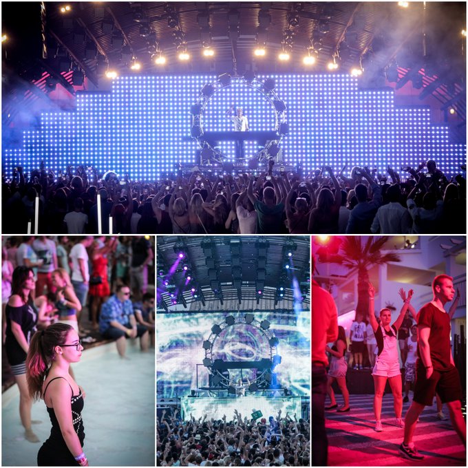 The sun was setting behind the Ushuaïa stage and A State of Trance support DJ Andrew Rayel was up on the table, swinging his arms wildly from side to side as the tightly packed crowd in front of the pool was mimicking his movements in perfect unison. As you looked back across the sea of people towards the beach end of Ushuaïa the waving arms gradually lost their vigour, until a group of more mature clubbers (mums and dads on tour?) right at the back put the young ones to shame, knocking out a perfectly timed, energetic double hand wave for the duration of the song.