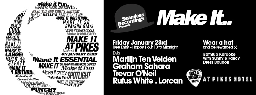 Supplying a sizeable chunk of locals' off-season entertainment, the guerrillas of epic winter parties (self-proclaimed title, but we'll let them have it) Seamless Recordings are one sleep away from their fourth Make It party, a night which has gone down successfully in various locations about the island.