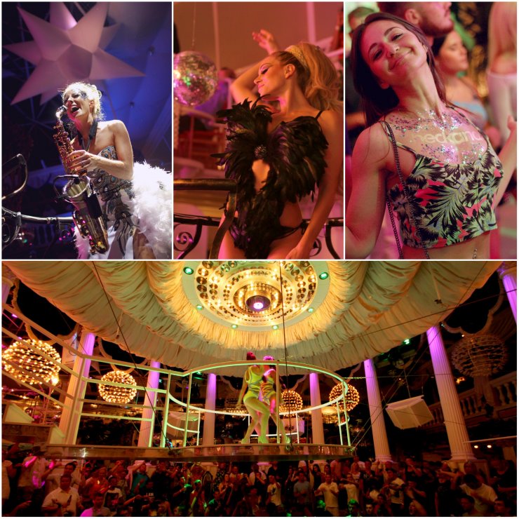 The show must go on, so the resident DJs continued with their set turning up the music and betting for house sounds with some dubstep beats, playing hits like Fade by Solu Music and Kimblee or Enzo Siffredi’s Sometimes track. The party, which went beyond 6am, offered a huge show where they mixed music, dancing, live instruments and performance all in one, hosted by San Antonio’s Palace, Es Paradis disco.