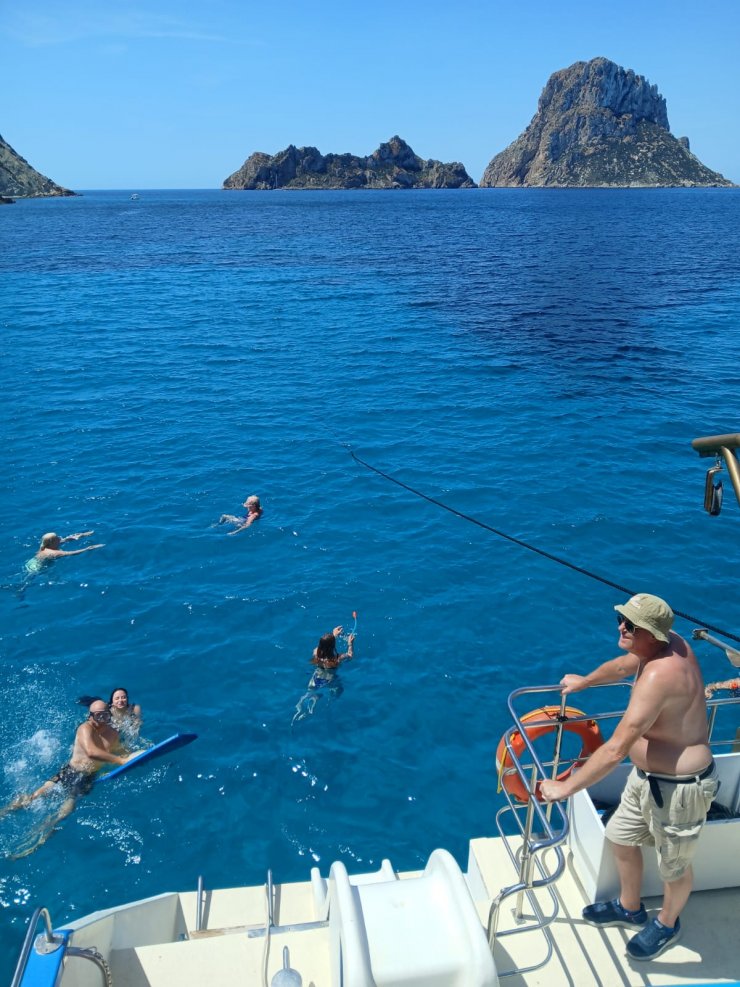 Da lì, abbiamo seguito la costa fino a fermarci in una piccola cala, appena prima della spiaggia di Cala D'Hort. Era arrivato il momento di una sosta di 40 minuti per nuotare e fare snorkeling, seguita da frutta fresca.