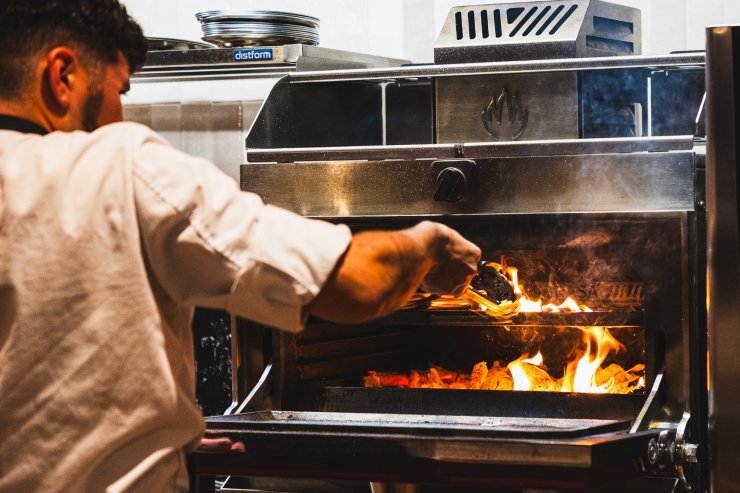 La cucina a vista e la vistosa griglia per cottura a fiamma libera hanno sicuramente catturato la nostra attenzione e dato vita al menù in un batter d'occhio.