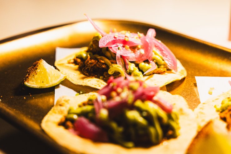 La Cochinita Pibil, carne di maiale cotta a fuoco lento come da tradizione, marinata con succo di agrumi e pasta achiote. Ricca di gusto, la carne sminuzzata è stata ricoperta da un saporito condimento a base di avocado e da cipolle rosse sottaceto.
