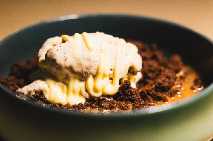 Insieme a questo, le texture al cioccolato di Oaxaca hanno portato una croccantezza ricca e biscottata che abbiamo immerso nel gelato alla cannella.
