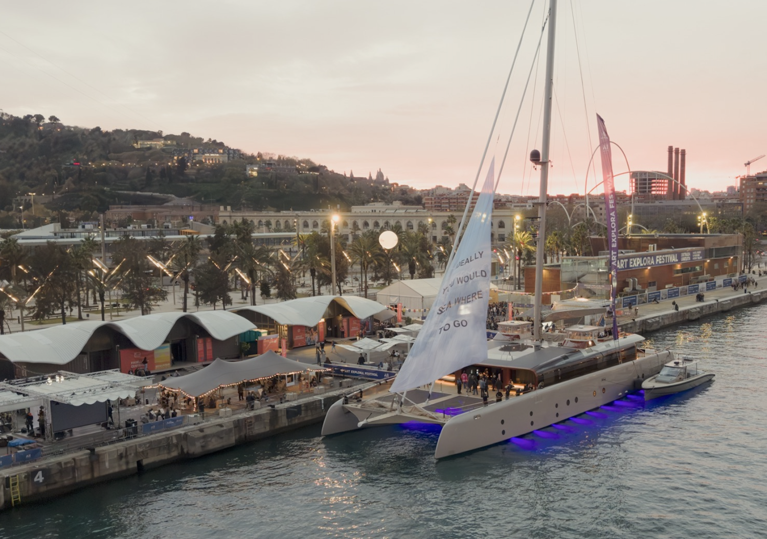 Al centro del festival c'è la nave stessa (una prima mondiale), uno splendido catamarano a vela di 47 metri progettato per ospitare fino a 2.000 visitatori al giorno. A bordo, il pubblico può ammirare una serie di installazioni che esplorano il Mediterraneo come spazio di scambio e influenza.