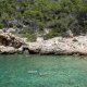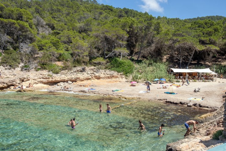 Come arrivare: Raggiungibile in auto sulla strada per Portinatx. Parcheggio limitato. La strada di accesso è ripida e presenta buche profonde, ma non è lunga. Se vieni con un'auto noleggiata, ti conviene lasciarla sulla strada e proseguire a piedi. È raggiungibile anche in autobus da Ibiza Città e Santa Eulalia (trovi gli orari qui).